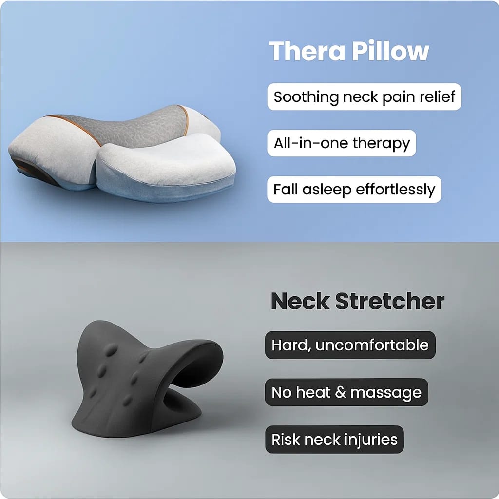 The Thera Pillow now comes with enhanced cervical traction for deeper neck relief, upgraded memory foam for lasting comfort, and improved breathability to keep you cool throughout the night. Its ergonomic butterfly design has also been refined to better support multiple sleeping positions, ensuring maximum relaxation and spinal alignment. Together, these four upgrades make it more effective, durable, and soothing than ever before.